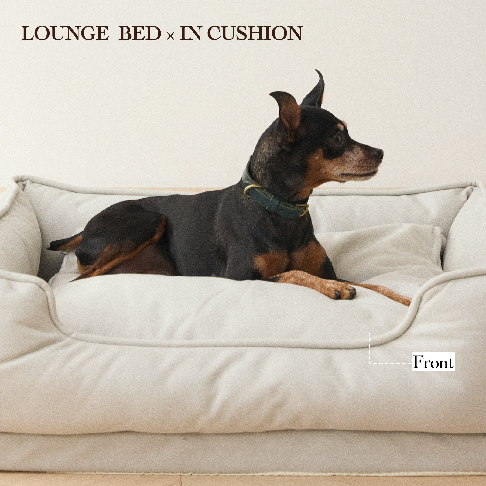 ラウンジベッドにすっぽりと収まるように設計されたサイズ感でもあり愛犬がいつでも安心して体を預けられるようなデザインです。