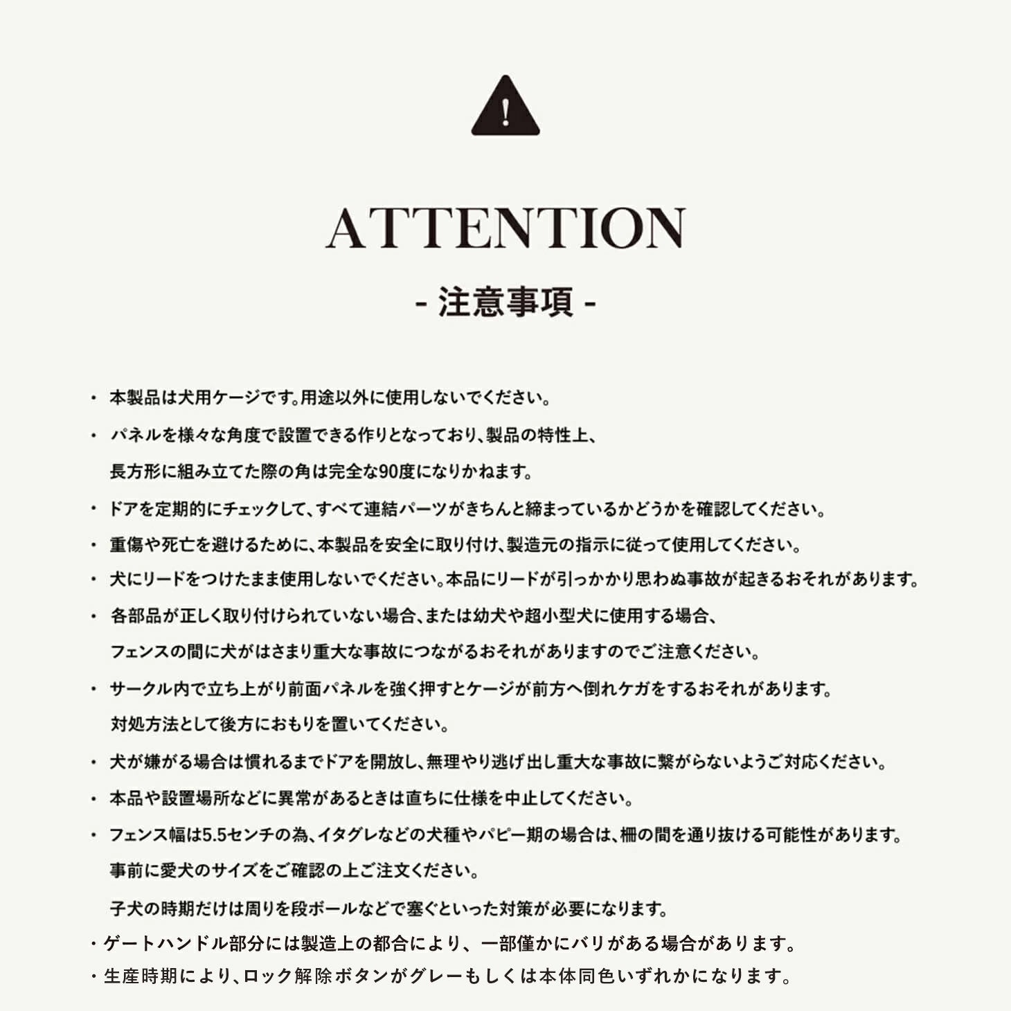 ※フェンス幅は6.5センチの為、イタグレなどの犬種やパピー期の場合は、柵の間を通り抜ける可能性があります。事前に愛犬のサイズをご確認の上ご注文ください。