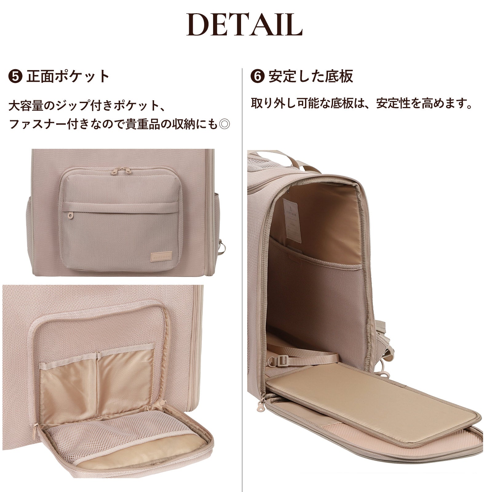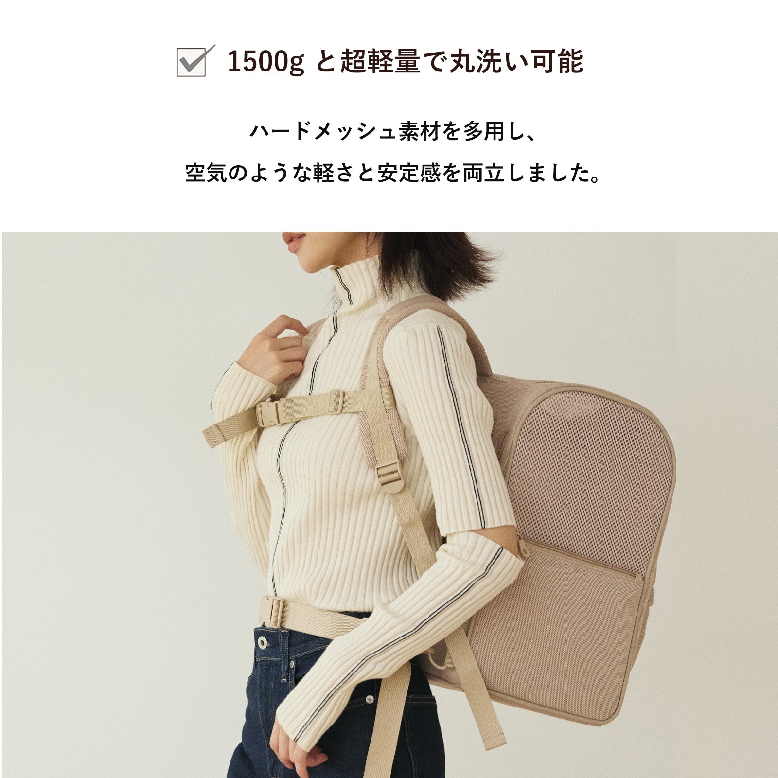 日常のお散歩はもちろん、旅行やカフェでの待機にも便利な、多機能なバックパックキャリーです。